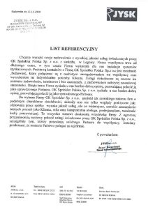 “Chcemy wyrazić swoje zadowolenie z wysokiej jakości usług świadczonych przez GK Sprinkler Polska Sp. z o.o. z siedzi ą w Legnicy. Nasza współpraca trwa od dłuższego czasu, w tym czasie Firma wykonała dla nas instalacje systemów tryskaczowych. Podstawą kontaktów z Firmą GK Sprinkler Polska Sp.z o.o jest rzetelność ,fachowość, które połączone są z osobistym zaangażowaniem we współpracę oraz wyczuleniem na indywidualne potrzeby Klienta. Usługi świadczone są zawsze ku naszemu zadowoleniu, terminowo i bez zastrzeżeń, z zachowaniem należytej zawodowej staranności. Dzięki temu Firma zyskała u nas bardzo dobrą opinię, pozwalającą polecić ją jako sprawdzonego Partnera. GK Sprinkler Polska Sp. z o.o. zyskała u nas bardzo dobrą opinię, pozwalającą polecić jąjako sprawdzonego Partnera.