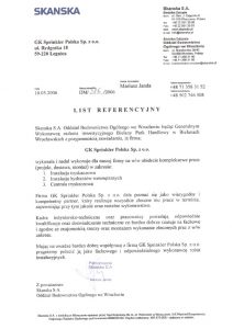 Mając na uwadze bardzo dobrą współpracę z firmą GK Sprinkler Polska Sp. z o.o. pragniemy polecić ją jako fachowego i odpowiedzialnego wykonawcę robót instalacyjnych.”